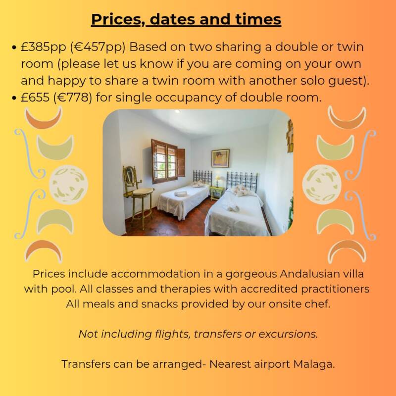 Our days will be filled with fun, nature and sunshine! If this is calls to you then do get in touch to book! Contact details on final page. Only three rooms left!